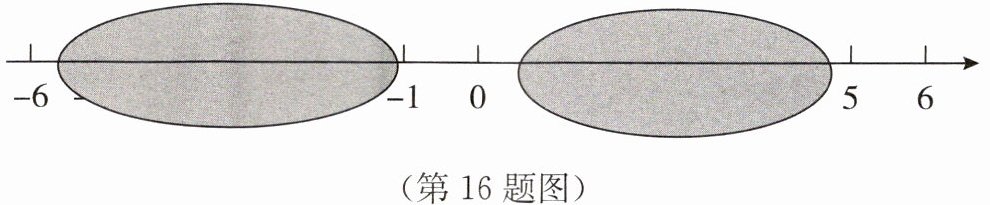 16. 小明写作业时不慎将墨水滴在数轴上,根据图中的数值,判定墨迹盖住部分的整数有