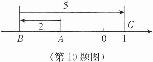 10. 如图,数轴上一动点$A$向左移动 2 个单位长度到达点$B$,再向右移动 5 个单位长度到达点$C$,若点$C$表示的数为 1,则点$A$表示的数为(