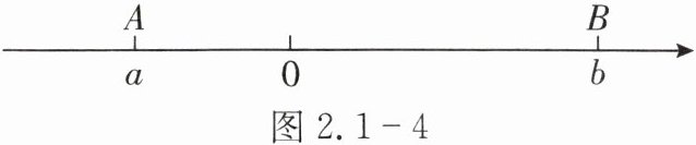 9. 如图 $2.1 - 4$,点 $A$,$B$ 在数轴上分别表示有理数 $a$,$b$,$A$,$B$ 两点之间的距离表示为 $AB$,在数轴上 $A$,$B$ 两点之间的距离 $AB = |a - b|$。例如:数轴上表示 $-1$ 与 $-2$ 的两点间的距离 $=| - 1-( - 2)| = - 1 + 2 = 1$;而 $|x + 2| = |x-( - 2)|$,所以 $|x + 2|$ 表示 $x$ 与 $-2$ 两点间的距离。利用数形结合思想回答下列问题。