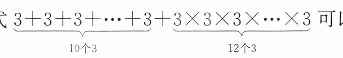 1. 算式$\underbrace{3+3+3+\cdots +3}_{10个3}+\underbrace{3× 3× 3× \cdots × 3}_{12个3}$可以写成(