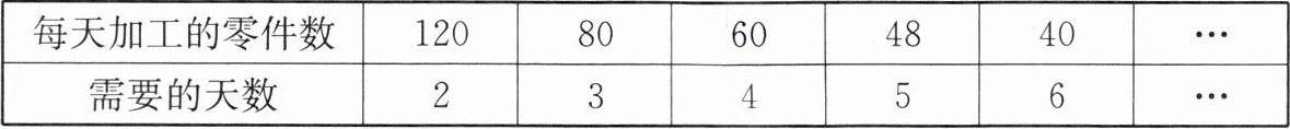 7. 某机械厂需要加工一批零件,每天加工的零件数和需要的天数如下表: