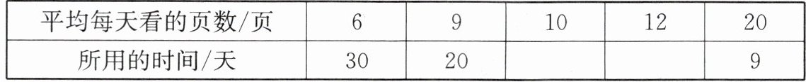 (2)是,因为每天看的页数和所用天数的乘积相等,是一个确定的值180,所以平均每天看的页数与所用的时间成反比例关系.