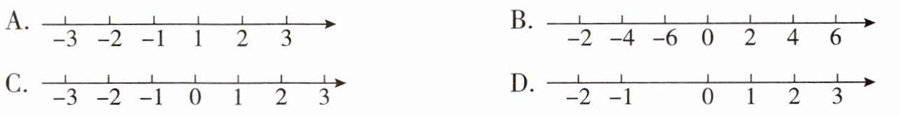 2. 邮递员骑车从邮局出发,先向南骑行 2 km 到达 A 村,继续向南骑行 3 km 到达 B 村,然后向北骑行 9 km 到达 C 村,最后回到邮局. 以邮局为原点,以向北方向为正方向,用 1 cm 为单位长度表示 1 km,画出数轴,并在该数轴上表示出 A,B,C 三个村庄的位置.