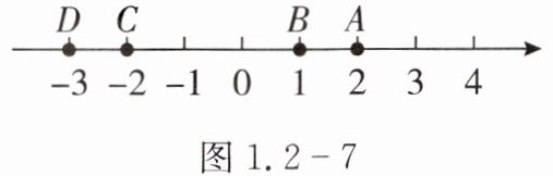 6. 如图 1.2 - 7 所示,表示互为相反数的两个点是(