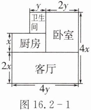 7. 如图16.2-1为小李家住房的结构,小李打算把卧室和客厅铺上木地板. 请你帮他算一算,他至少应买木地板的面积为(