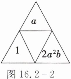 12. 如图16.2-2,沿大等边三角形的对称轴对折,则互相重合的两个小正三角形内的单项式的乘积为