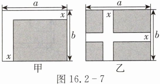 1. 通过计算比较图16.2-7图甲,图乙中阴影部分的面积,可以得到一个代数恒等式: