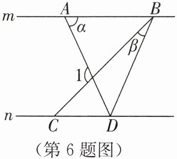 6. 如图,直线 $m// n$,$BC$ 为$\angle ABD$ 的三等分线,$\angle DAB = \alpha$,$\angle DBC = \beta$,则$\angle 1$ 的度数为(