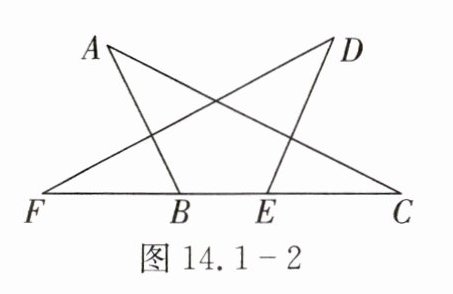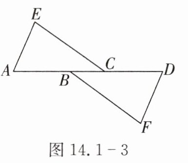5. 如图 14.1 - 3,$\triangle ACE\cong\triangle DBF$,$AD = 8$,$BC = 2$,则 AC 的长度为(