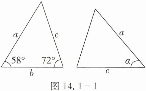 3. 如图 14.1 - 1,两个三角形全等,则∠α 等于(