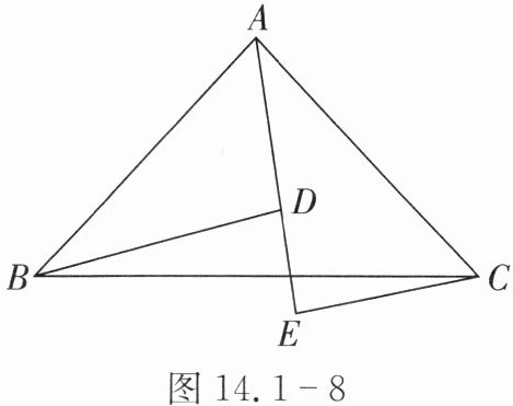 11. 如图 14.1 - 8,A,D,E 三点在同一直线上,且$\triangle BAD\cong\triangle ACE$. 试说明: