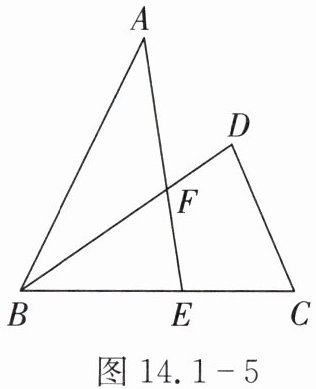 7. 如图 14.1 - 5,$\triangle ABE\cong\triangle BCD$,点 E 在边 BC 上,AE 与 BD 交于点 F,$\angle BAE = \angle CBD$,$BD = AE$. 下列角中,与$\angle BDC$互补的是(