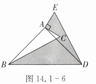 8. 如图 14.1 - 6,$\triangle ABC\cong\triangle ADE$,$\angle CAE = 90^{\circ}$,$AB = 2$,则图中阴影部分的面积为(