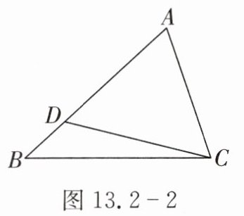 3. 如图 13.2 - 2,在△ABC 中,D 是 AB 上一点,且 AD = AC,连接 CD,比较大小(填“>”“<”或“=”)