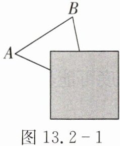 2. 如图 13.2 - 1,△ABC 被木板遮住了一部分,其中 AB = 5,则 AC + BC 的值可能是(