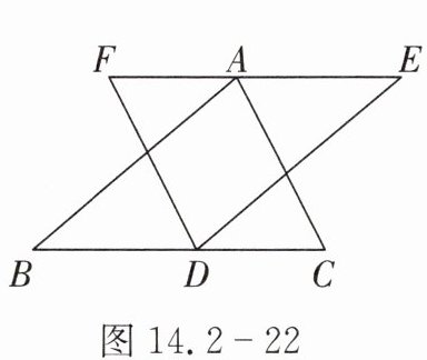 5. 如图14.2-22,在△ABC与△DEF中,AB=DE,BC=EF,且点A在EF上,点D在BC上,添加下列一个条件后:①∠C=∠F;②∠B=∠F;③AC=DF;④∠BAC=∠EDF.能判定△ABC≌△DEF的个数是(