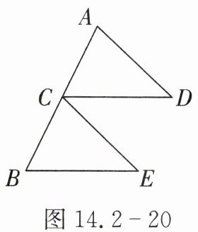 3. 如图14.2-20,C是AB的中点,CD=BE,请添加一个条件