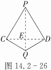 9. 已知两组邻边分别相等的四边形叫作“筝形”.如图14.2-26,四边形PCQD是一个筝形,其中PC=PD,CQ=DQ,在探究筝形的性质时,得出如下结论:①△PCQ≌△PDQ;②PQ⊥CD;③CE=DE;④S四边形PCQD=PQ·CD,其中正确的结论有