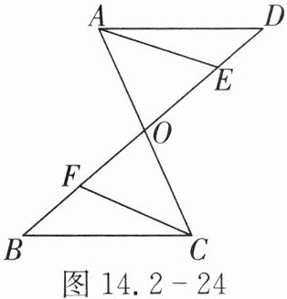 7. 如图14.2-24,AC与BD交于点O,AD=CB,E,F是BD上两点,且AE=CF,DF=BE.求证:AE//CF.