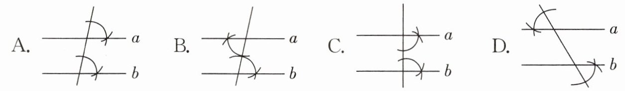 6. 利用下列尺规作图中,不一定能判定直线a平行于直线b的是(