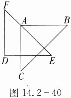 1. 如图14.2-40,在△ABC和△DEF中,∠D=∠BAC=90°,点A在EF上,AB=DE,BC=EF,则能直接判断△ABC≌△DEF的依据是(