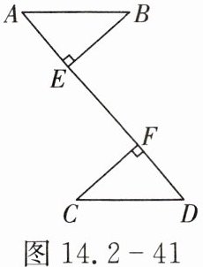 3. 如图14.2-41,已知BE⊥AD,CF⊥AD,垂足分别为E,F,有如下条件:①AB=DC,∠B=∠C;②AB=DC,AB//CD;③AB=DC,BE=CF;④AB=DF,BE=CF.若选择一组,判定Rt△ABE≌Rt△DCF,可以选择