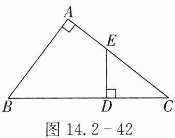 4. 如图14.2-42,D为Rt△ABC中斜边BC上的一点,且BD=BA,过点D作BC的垂线,交AC于点E.若AE=6 cm,CD=8 cm,则△CDE的面积为(