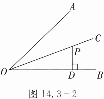 2. 如图 14.3 - 2,$OC$平分$\angle AOB$,点$P$在$OC$上,$PD\perp OB$,$PD = 2$,则点$P$到$OA$的距离是(