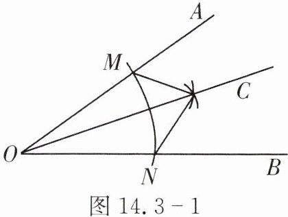 1. 如图 14.3 - 1,用尺规作$\angle AOB$的平分线的方法如下: