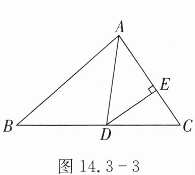 3. 如图 14.3 - 3,在$\triangle ABC$中,$AB = 5$,$AD$平分$\angle BAC$交$BC$于点$D$,$DE\perp AC$,垂足为$E$,$\triangle ABD$的面积为 5,则$DE$的长为