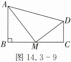 9. 如图 14.3 - 9,在四边形$ABCD$中,$\angle B = 90^{\circ}$,$AB// CD$,$M$为$BC$边上的一点,且$AM$平分$\angle BAD$,$DM$平分$\angle ADC$。求证: