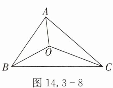 8. 如图 14.3 - 8,$\triangle ABC$的三边$AB$,$CA$,$BC$的长分别是 40,50,60,其三条角平分线交于点$O$,则$S_{\triangle ABO}:S_{\triangle BCO}:S_{\triangle CAO}=$