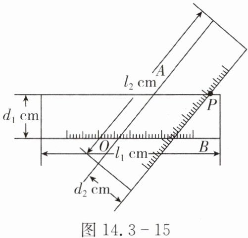 4. 如图 14.3 - 15,在纸上画有$\angle AOB$,将两把直尺按图示摆放,直尺边缘的交点$P$在$\angle AOB$的平分线上,则(