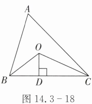 7. 如图 14.3 - 18,在$\triangle ABC$中,$\angle ABC$和$\angle ACB$平分线交于点$O$,过点$O$作$OD\perp BC$于点$D$,$\triangle ABC$的面积为 42,$OD = 4$,则$\triangle ABC$的周长是(