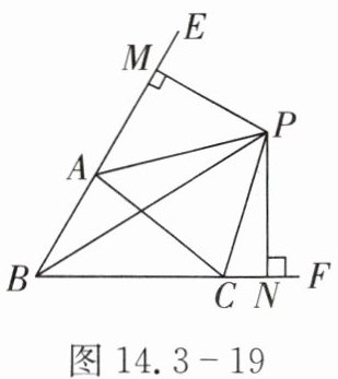8. 如图 14.3 - 19,在$\triangle ABC$中,$\angle ABC$,$\angle EAC$的角平分线$BP$,$AP$交于点$P$,延长$BA$,$BC$,$PM\perp BE$,$PN\perp BF$,则下列结论中错误的是(
