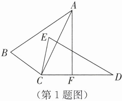 1. 如图,$\triangle ABC\cong\triangle DEC$,点$A$和点$D$是对应顶点,点$B$和点$E$是对应顶点,过点$A$作$AF\perp CD$,垂足为点$F$,若$\angle BCE = 65^{\circ}$,则$\angle CAF$的度数为(