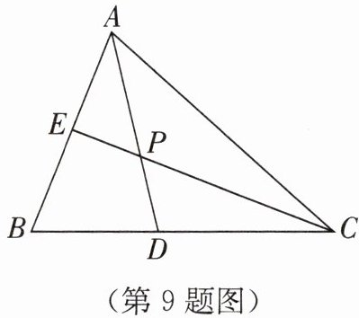 9. 如图,在$\triangle ABC$中,$\angle ABC = 60^{\circ}$,$AD$,$CE$分别平分$\angle BAC$,$\angle ACB$,$AD$,$CE$相交于点$P$。