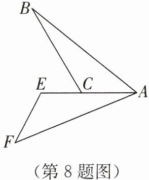8. 如图,在$\triangle ABC$与$\triangle AEF$中,$A$,$C$,$E$三点在一条直线上,$\angle AEF+\angle BAF = 180^{\circ}$,$\angle BCE=\angle BAF$,$AB = AF$,若$BC = 24$,$EF = 14$,则$\frac{AC - CE}{AE}$的值为