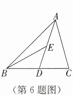 6. 如图,$\triangle ABC$中,$AD$是$\triangle ABC$的角平分线,$BE$是$\triangle ABD$的中线。若$\triangle ABC$的面积是$24$,$AB = 5$,$AC = 3$,则$\triangle ABE$的面积是(