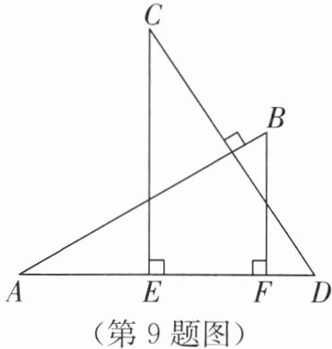 9. 如图,$AB\perp CD$,且$AB=CD$.$E$,$F$是$AD$上两点,$CE\perp AD$,$BF\perp AD$.若$CE=a$,$BF=b$,$EF=c$,则$AD$的长为(