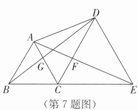 7. 如图,点$B$,$C$,$E$在同一条直线上,$\triangle ABC$与$\triangle CDE$都是等边三角形,则下列结论不一定成立的是(