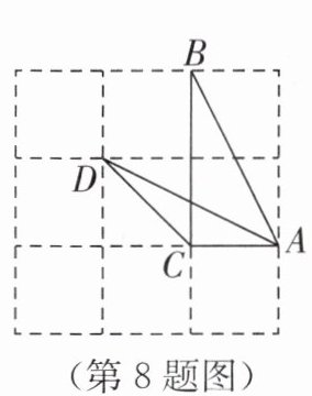 8. 如图,点$A$,$B$,$C$,$D$均在正方形网格格点上,则$\angle B+\angle D$等于(