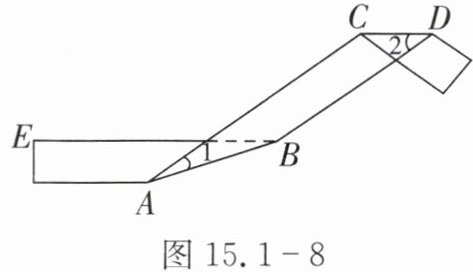 10. 如图 15.1 - 8,将一条对边互相平行的纸带进行两次折叠,折痕分别为 AB,CD.若 CD//BE,∠1 = 20°,则∠2 的度数是