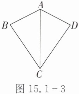 5. 如图 15.1 - 3,△ABC 与△ADC 关于直线 AC 对称,∠BAD + ∠BCD = 180°,则∠B =