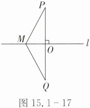 8. 如图 15.1 - 17,在一张纸上画一点 P 和一条直线 l,点 P 在直线 l 外,过点 P 作直线 l 的垂线,垂足为 O.将这张纸沿着直线 l 对折,得到点 P 关于直线 l 对称的点 Q.然后展开这张纸,在直线 l 上再选取一点 M,连接 PM 和 QM.你能利用轴对称性质和其他相关知识说明“垂线段最短吗”?