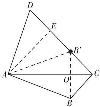 10. 如图 15.1 - 18,在四边形 ABCD 中,AB = AD,点 B 关于 AC 的对称点 B'恰好落在 CD 上.若∠BAD = α,求∠ACB 的度数.