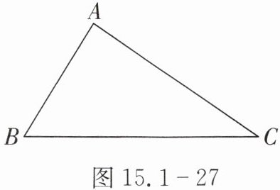 10. 如图 15.1 - 27,已知△ABC,请用尺规作图法在边 AC 上求作一点 P,连接 BP,使得∠APB = 2∠C.(保留作图痕迹,不写作法)