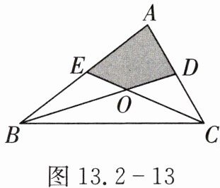 9. 如图 13.2 - 13,△ABC 的中线 BD,CE 交于点 O,四边形 ADOE 的面积是 3,求△ABC 的面积.