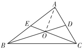 同理:$S_{\triangle AOD} = \frac{1}{6}S_{\triangle ABC}$.$\therefore$四边形ADOE的面积$ = \frac{1}{3}S_{\triangle ABC} = 3$.