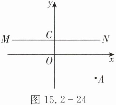 15. 如图15.2-24,在直角坐标系中,点 $ A $ 的坐标为$(3,-2)$,直线 $ MN // x $ 轴且交 $ y $ 轴于点 $ C(0,1) $,则点 $ A $ 关于直线 $ MN $ 的对称点的坐标为(